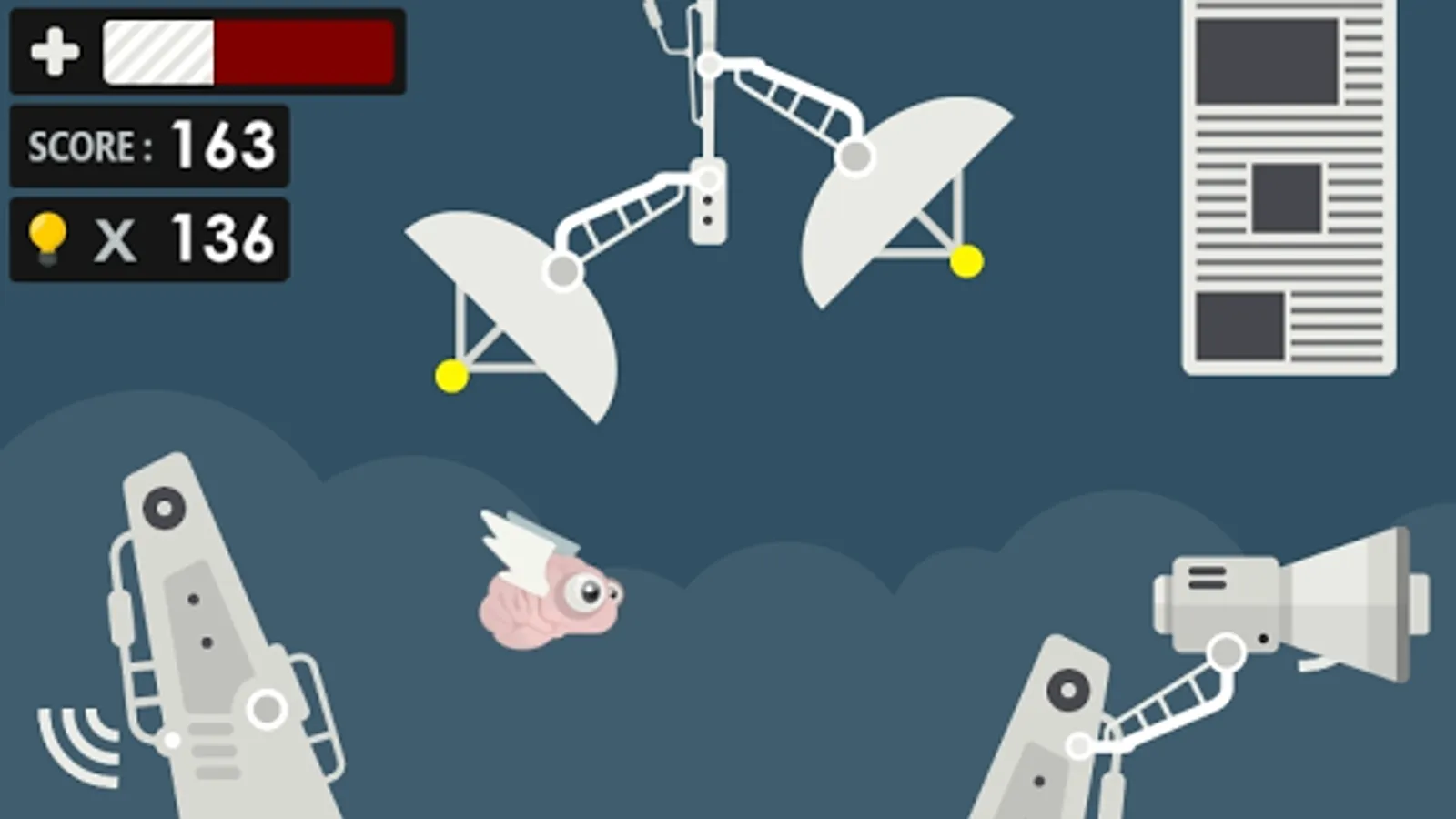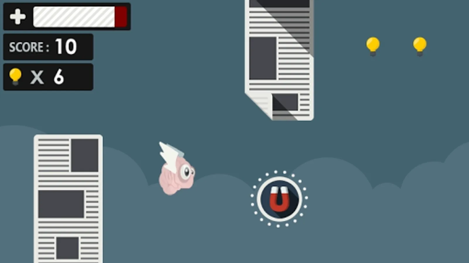 Flap your wings, collect idea bulbs and avoid hitting newspaper columns.
