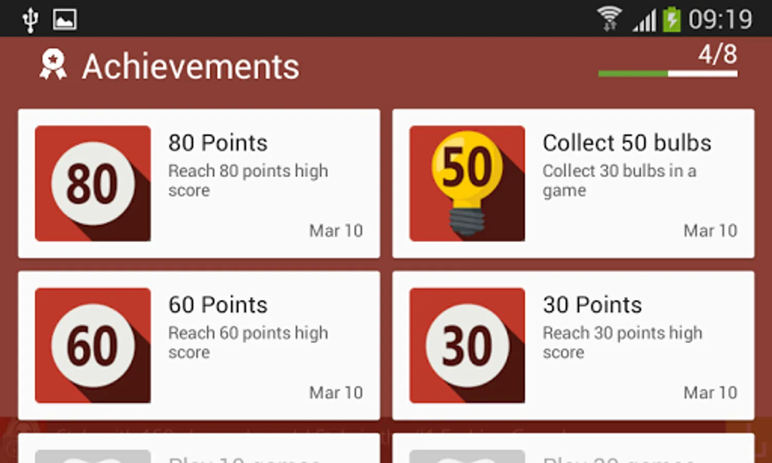 • Google Play Services integration (Leaderboard and 8 achievements).