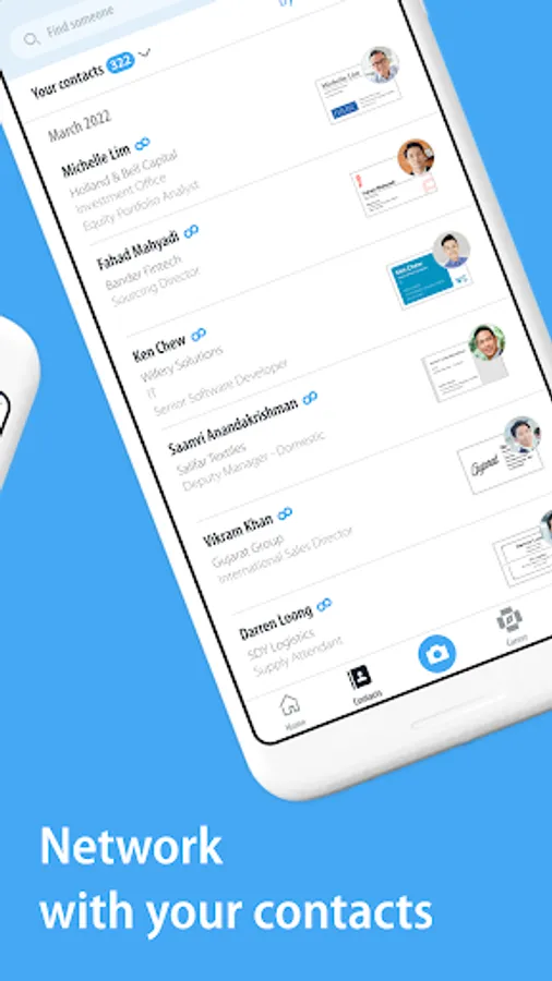 Sync your networks across devices; data is automatically updated when connected contacts update their details.