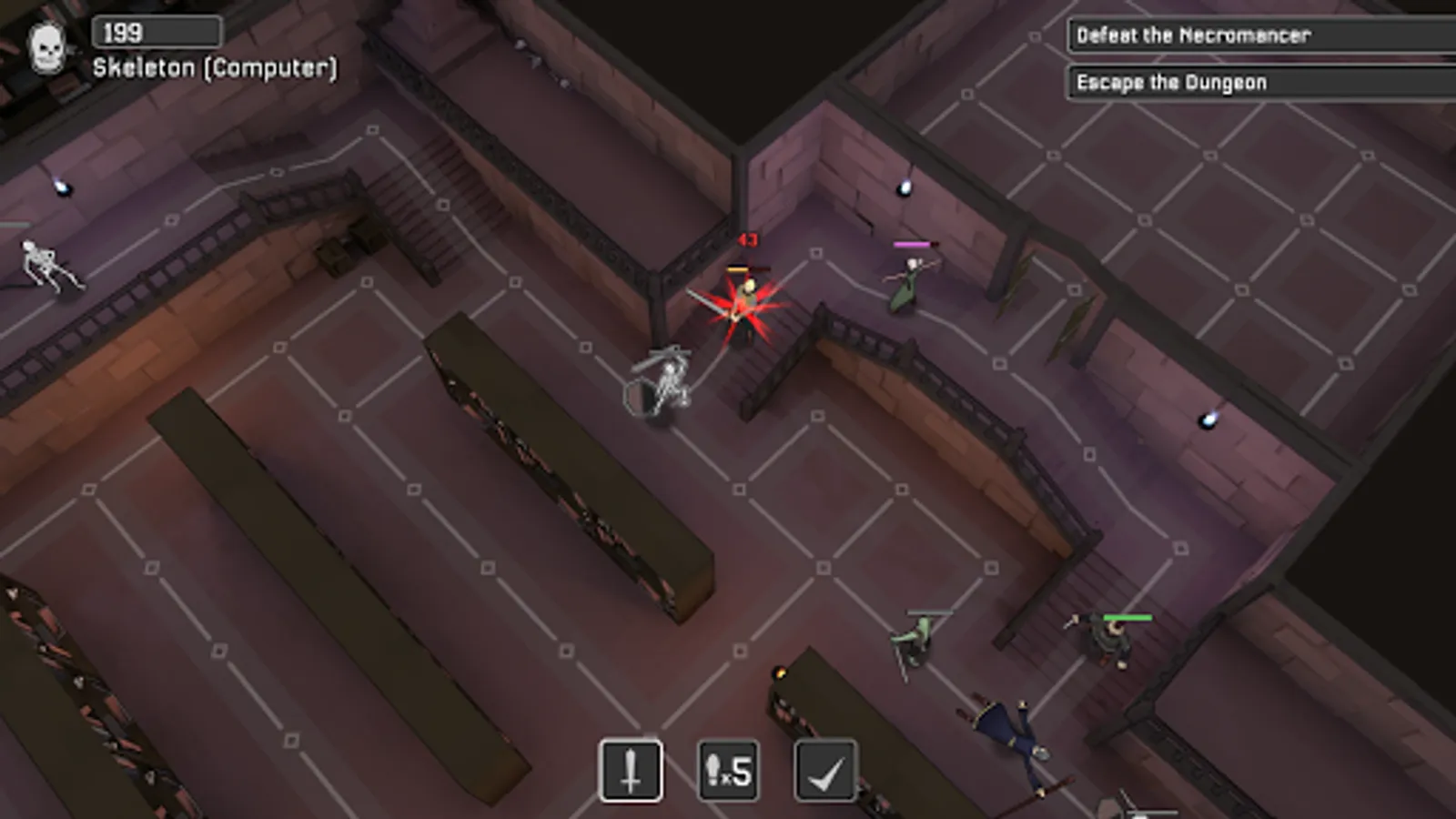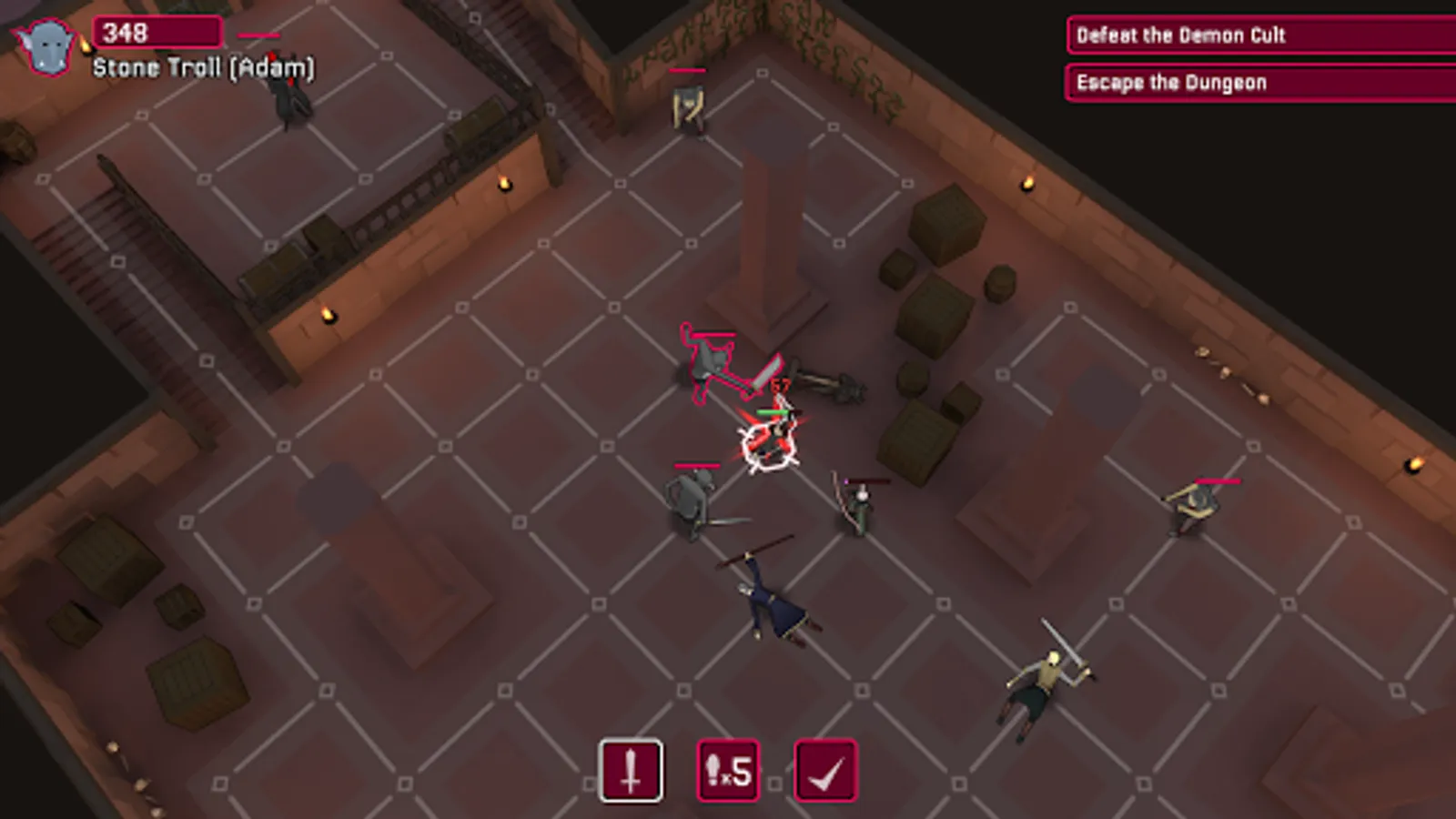 Dungeon Crawl is a turn-based multiplayer adventure game that hearkens back to nineties fantasy board games. Take control of four heroes and adventure deep into the dungeons of the Demon King! Use exciting abilities to defeat enemies and collect new items and weapons to improve your heroes. The game is spread across three environments, each one themed with unique graphics, monsters and music.