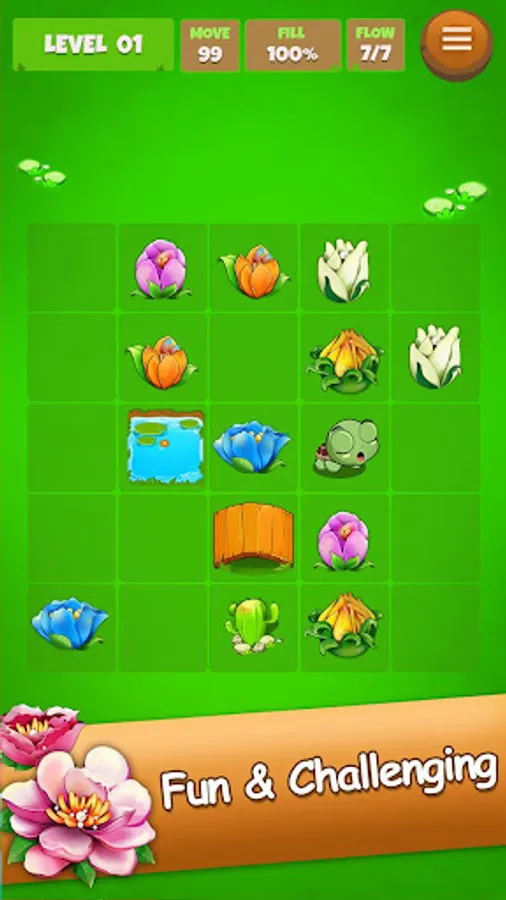 Connect the buds with the same color to make them bloom, fill the board to finish the level, super simple and a blast to play!