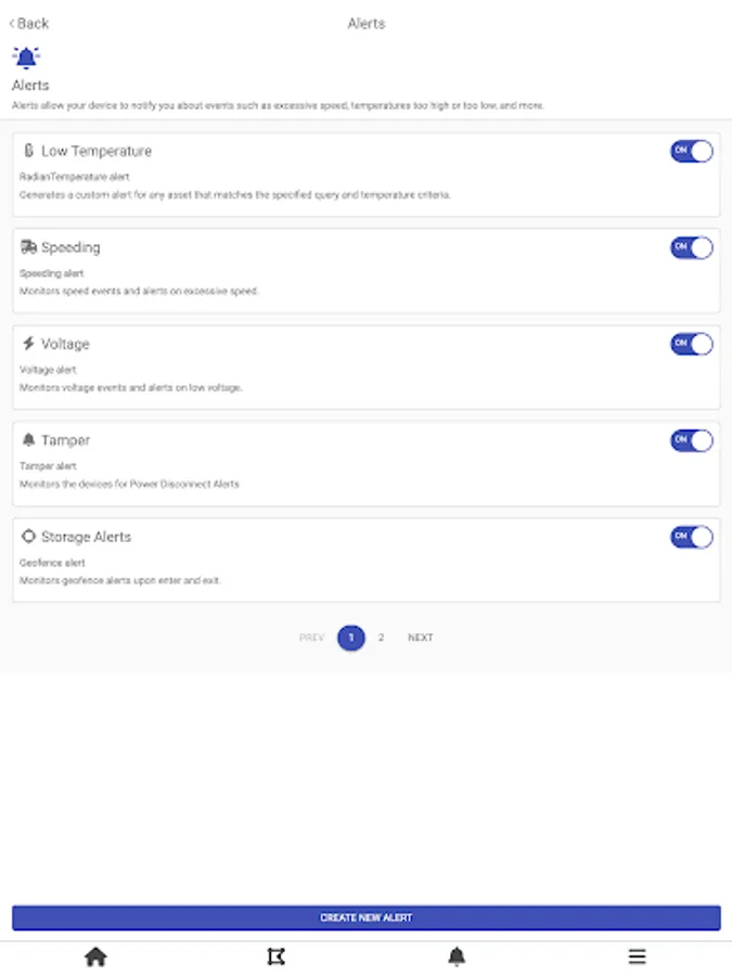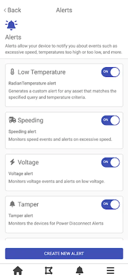 • Auto alerts for tamper, movement, speed, temperature, potential theft