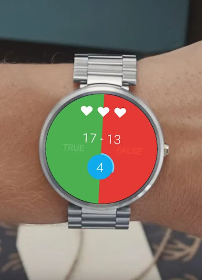 There is a module for Android Wear included. It is a little easier, because you only have to choose if the displayed answer, under the equation on the screen, is true or false by touching green or red panel.