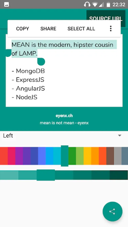 With Excerpt for Android you can generate and share beautiful text excerpts (as images) on Twitter, Facebook, Instagram or various other sites. Or you simply save it to your device and leave it there, or upload it to whatever service you like.