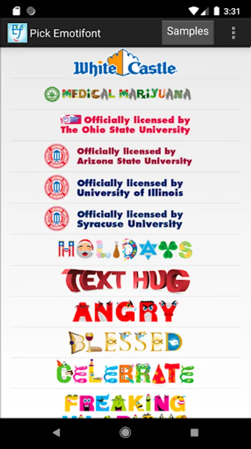 College licensed The Ohio State University Buckeye, Arizona State Sun Devils, Illinois Illini and Syracuse Big Orange Emotifonts!