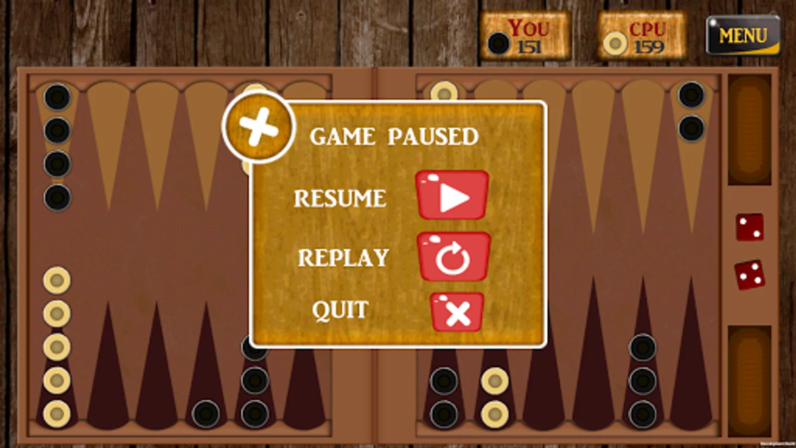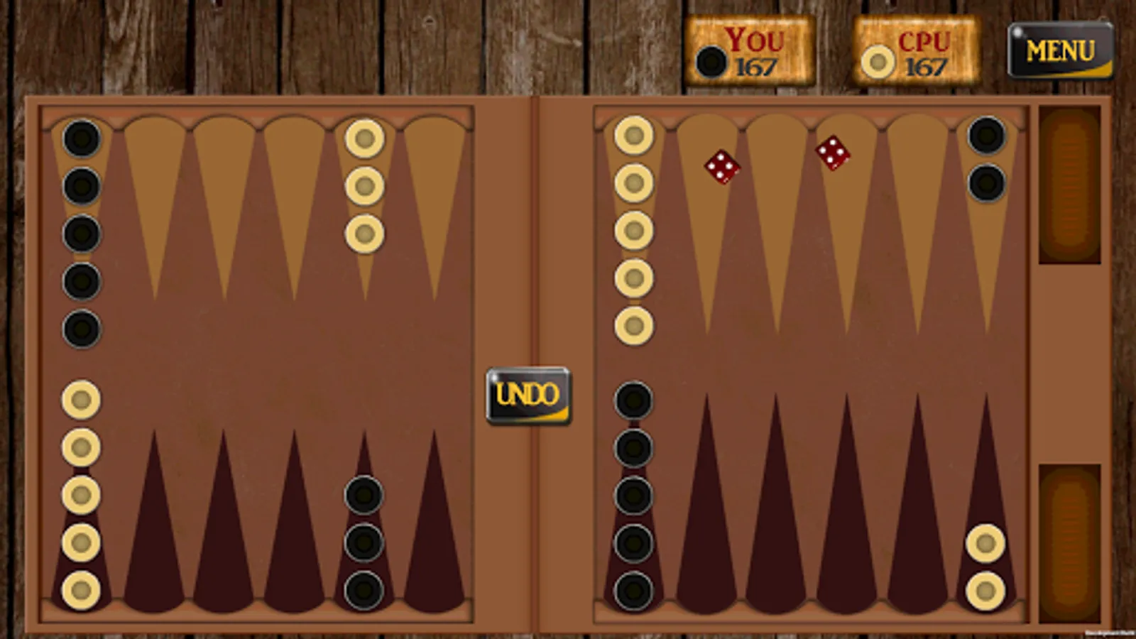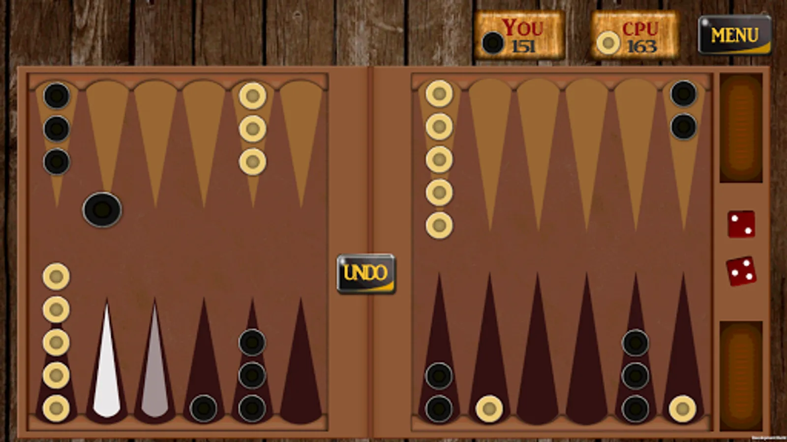 Backgammon is one of the oldest board games known. It is a two player game where playing pieces are moved according to the roll of dice, and a player wins by removing all of his pieces from the board before his opponent. Backgammon is a member of the tables family, one of the oldest classes of board games in the world.