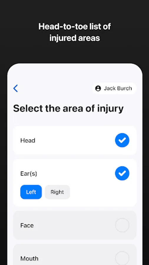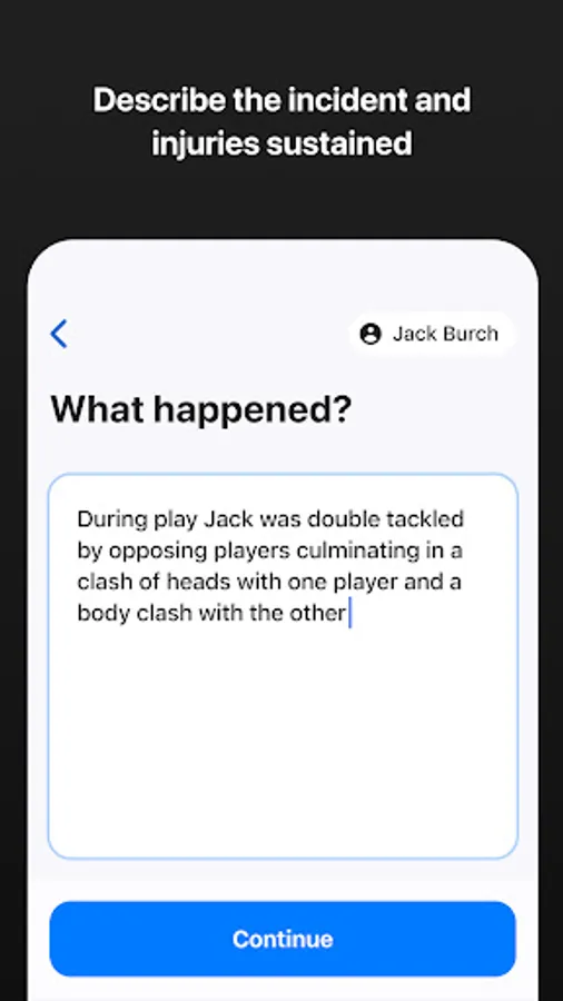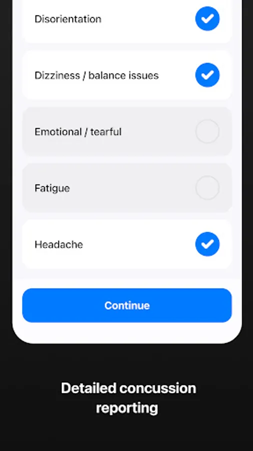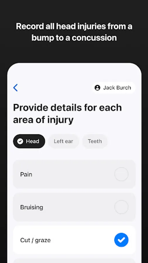 Every single report checks on whether an injury to the head has been sustained; users can record the smallest of bumps to serious signs and symptoms of concussion.