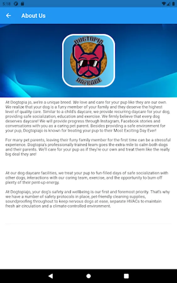 At Dogtopia jo, we’re a unique breed. We love and care for your pup like they are our own. We realize that your dog is a furry member of your family and they deserve the highest level of quality care. Similar to a child’s daycare, we provide recurring daycare for your dog, providing safe socialization, education and exercise. We firmly believe that every dog deserves daycare! We will provide progress through Instagram, Facebook stories and conversations with you as a caring pet parent. Besides providing a safe environment for your pup, Dogtopiajo is known for treating your pup to their Most Exciting Day Ever!