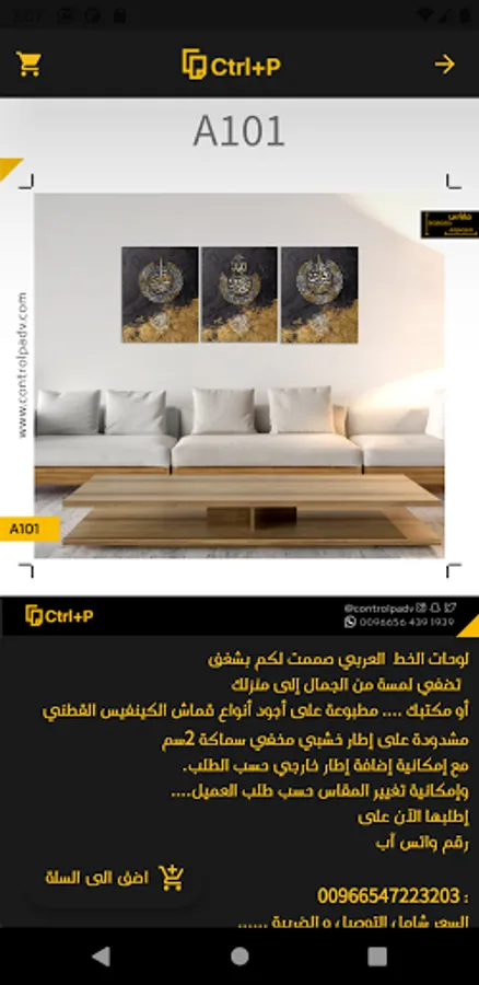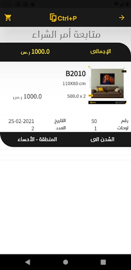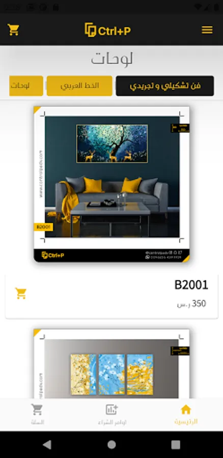 Through the application, you can see all that is new to the printing control company, including paintings of plastic and abstract art, Arabic calligraphy paintings and children's room paintings, and you can also submit purchase orders and delivery through the application.