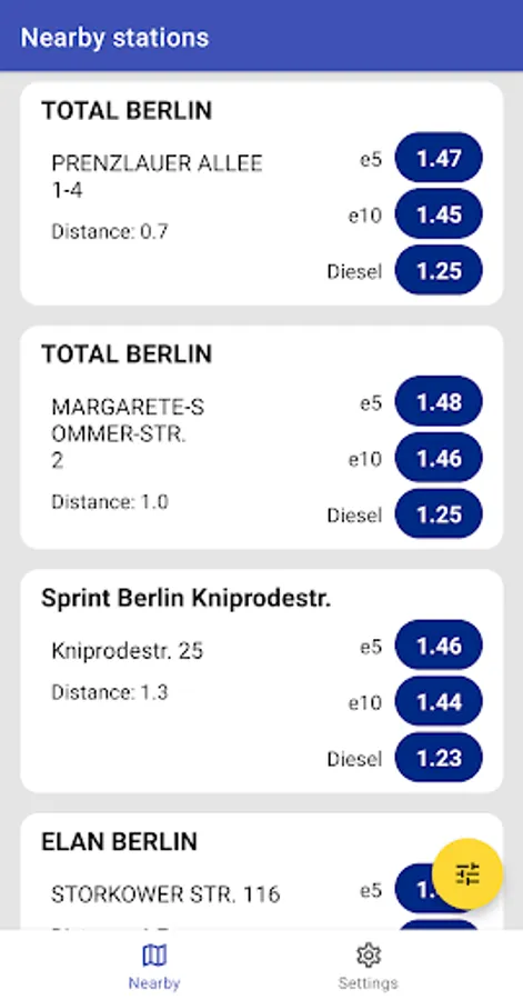 Use your device location to find nearby gas stations with the cheapest fuel prices.