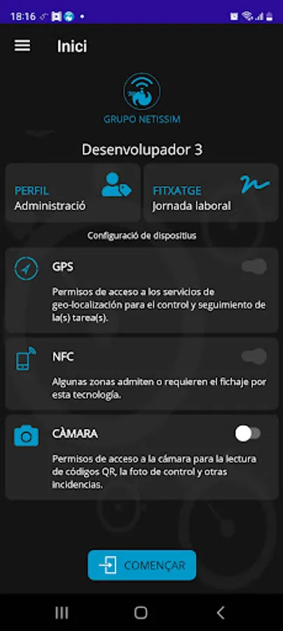 For the monitoring of the task and improvement of routes, it requires permissions to track the location of the operator in real time. It also allows signing in for other technologies, such as NFC tags and labeled QR codes.