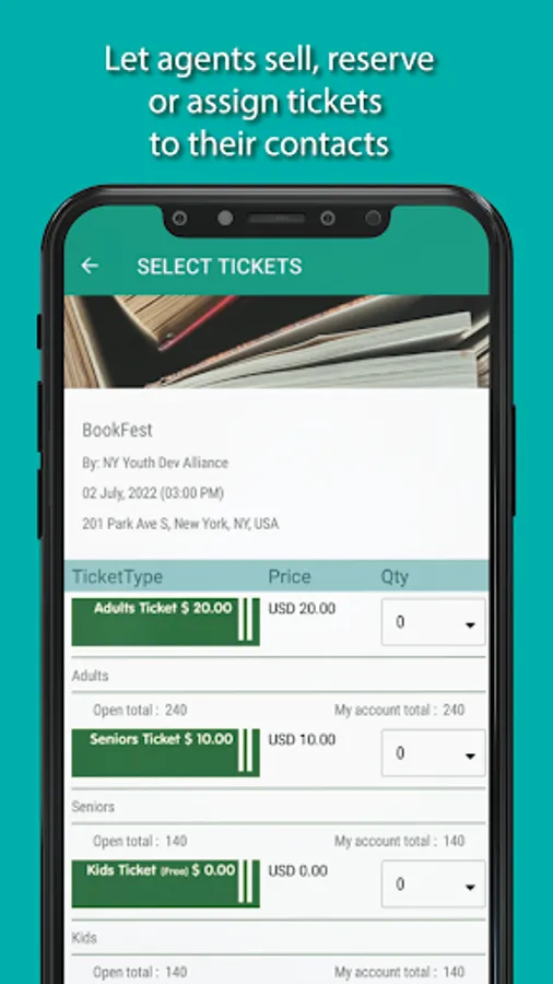 Tickets can be sold or reserved for users using their phone number