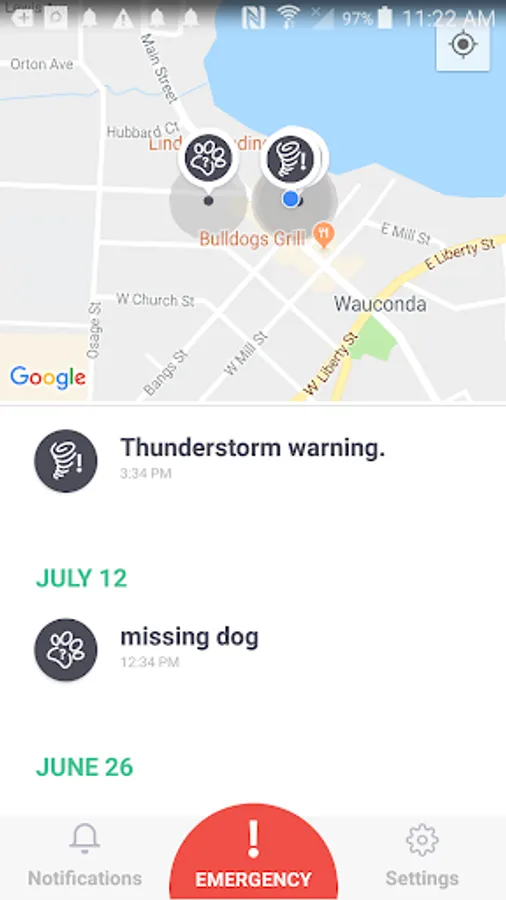 Crimezer allows citizens to get timely alerts in their area. Local first responders such as Police and Fire Departments will post alerts including missing pets, missing adults, bad weather or traffic in the area and recent crimes.