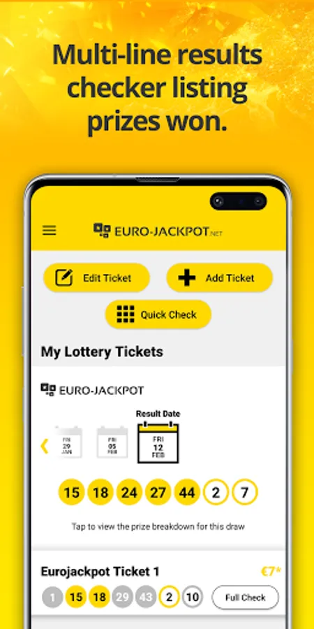 Enter and save your chosen numbers to see if you have won or to see how often they have come up in the past. You can also label your tickets – great if you play multiple lines or if you run a syndicate. The ticket checker also highlights prizes won on each ticket.