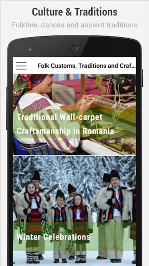 Romania at a glance: We invite all those who wish to explore "unwalked paths" with unspoiled and wild nature, and off-the-beaten track destinations to experience our app. Explore Romania allows the traveller to ”discover the last wild corner of Europe... which gives you a sense of timelessness” (Prince Charles). It tells the story of a country which delivers a unique mix of Latin, Byzantine and Balkan cultures and traditions in the heart of Europe.
