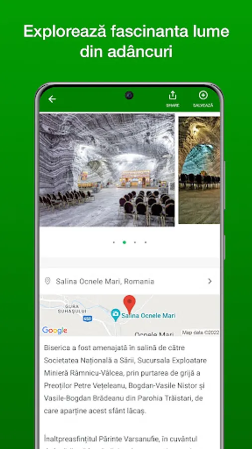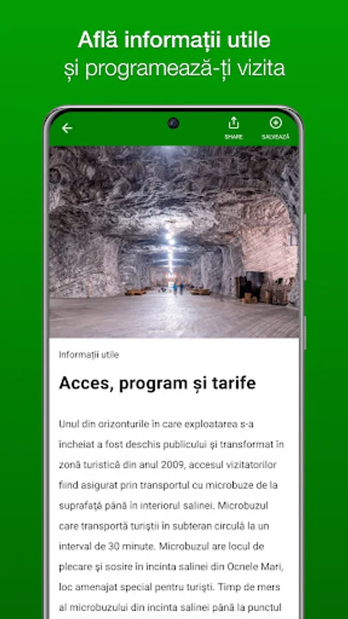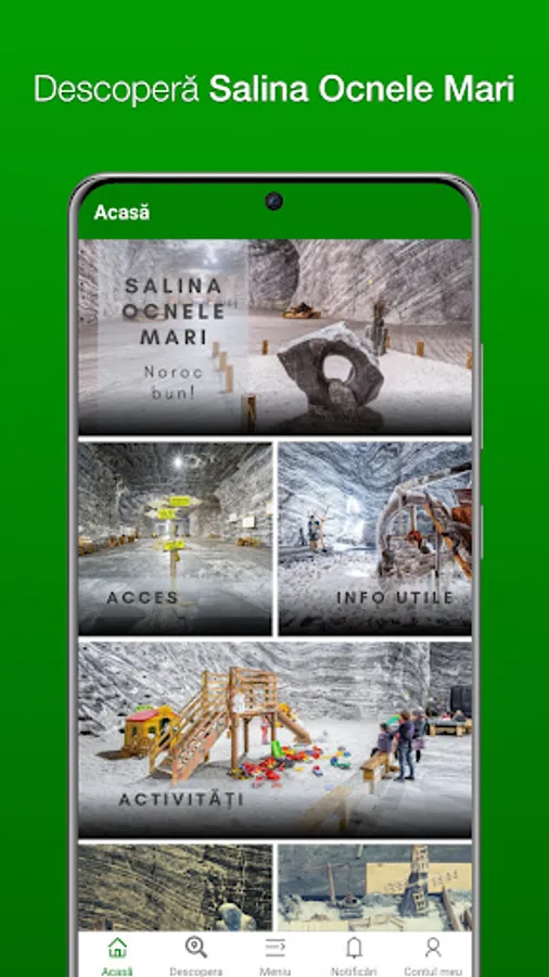 Ocnele Mari App welcomes visitors to guide them in exploring the magical realm of the underground but also to discover the surroundings.