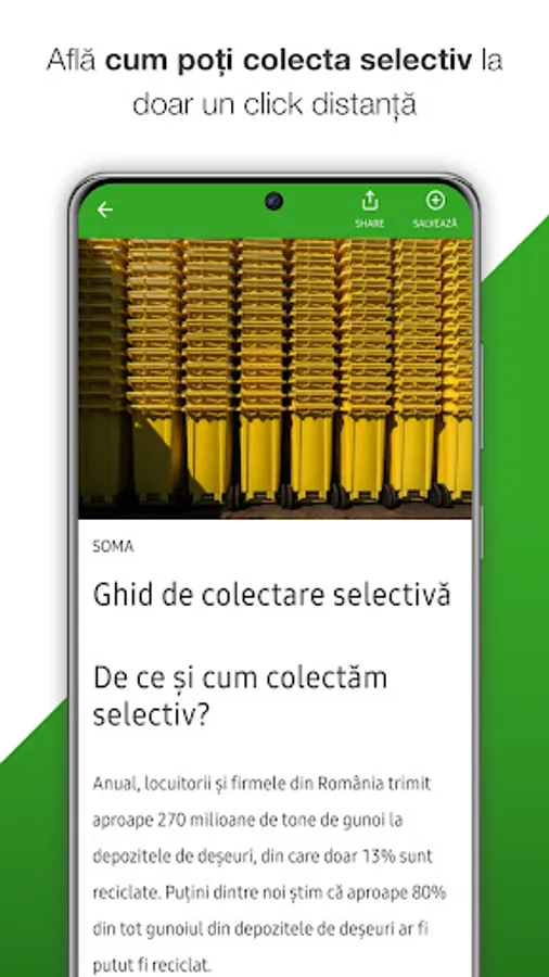 The application gives you all the details and news about both branches, but also the possibility to send your complaints directly to SOMA, to be resolved in the shortest possible time. In addition, you can directly see the map of all collection points.