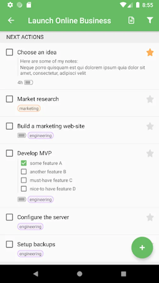 - All GTD lists are included: Inbox, Next, Waiting, Scheduled and more