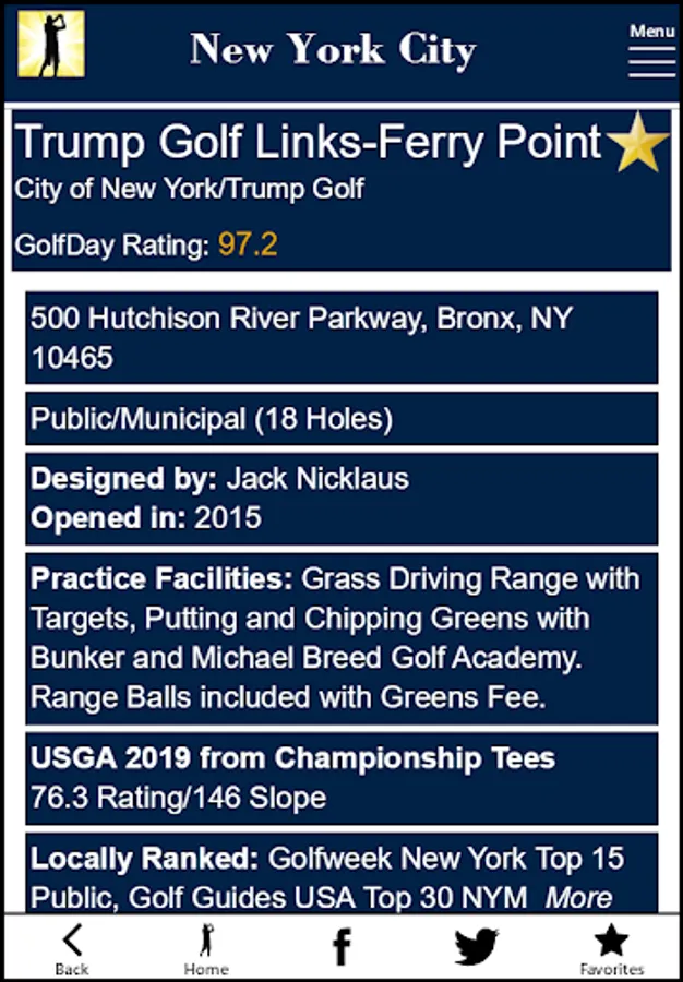 Don’t waste your time on a dog track. GolfDay New York City includes more than 10 municipal courses, and rates each one to make it easy to find the best course near you or where you plan to be. Once you decide, direct on-line booking provides the best price with no fees.