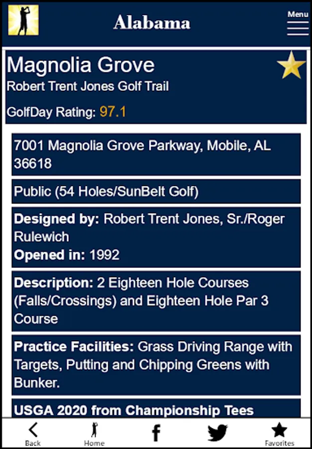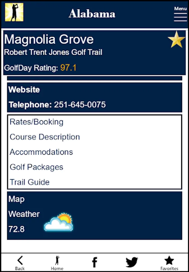 Don’t waste your time at a dog track. GolfDay Alabama includes over 125 golf courses in the state of Alabama, with quality ratings and easy searching to find the best courses near you or where you plan to be. You will also have rates, booking, practice facility details, mapping and directions right at your fingertips.
