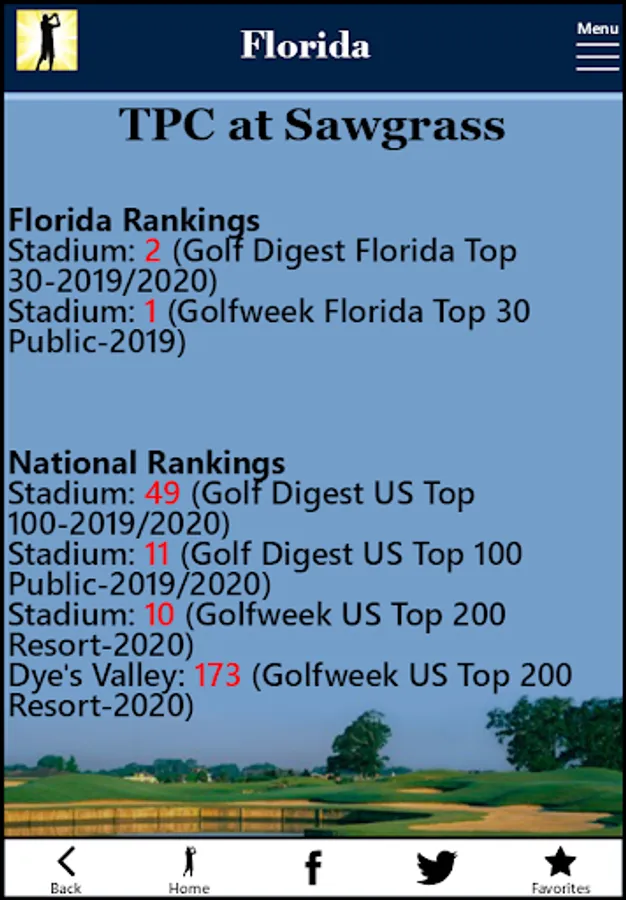 • Local and National Rankings by Golf Digest and Golfweek