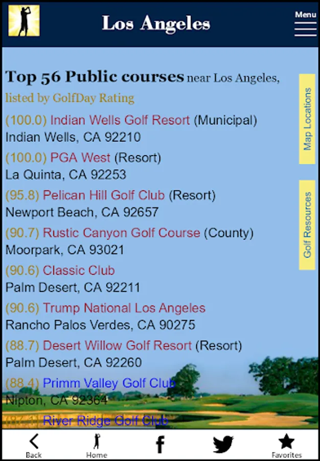 Don’t waste your time at a dog track. GolfDay Georgia includes nearly 300 courses in the LA area, with GolfDay ratings and easy searching to find the best courses near you or where you plan to be. You will also have rates, booking, practice facility details, mapping and directions right at your fingertips.