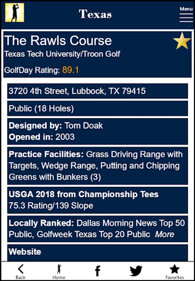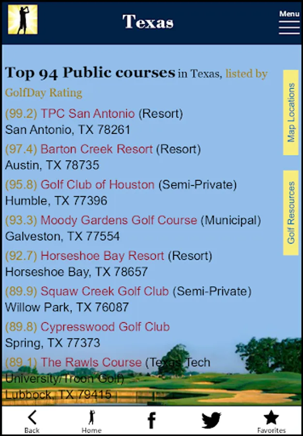 GolfDay Texas includes more than 600 golf courses in the state of Texas, with a GolfDay Rating and proximity search making it easy to find a great track near you or where you plan to be. Listings also include rates, booking links, course detail, golf league and junior golf information, mapping/directions and local weather. Don’t waste your valuable time at a Dog Track!