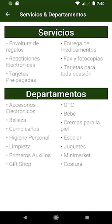 You can see all the departments and services we have.