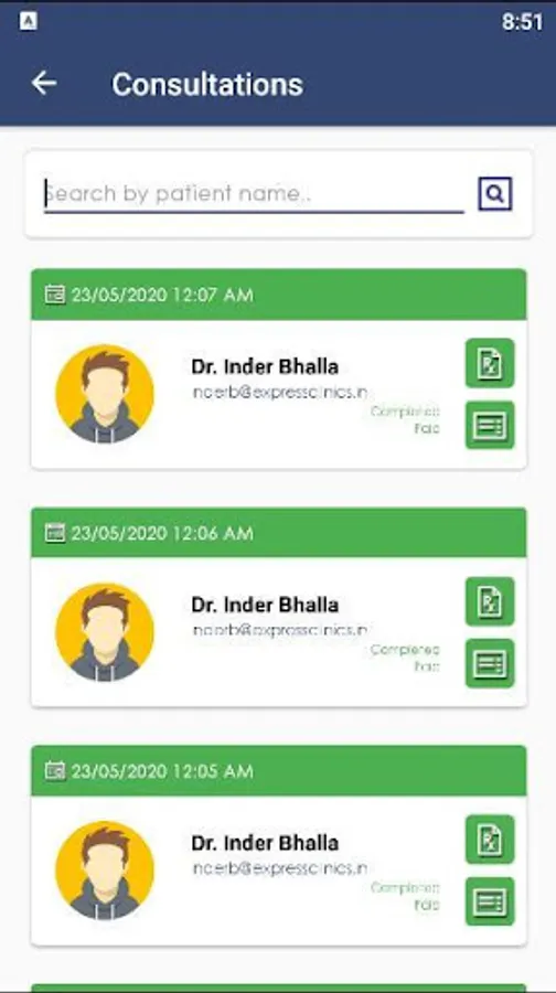 E-Consultation is the technology driven website plus android app provided by Express Clinics Pvt Ltd to its patients. It is used to avail consultation from doctors online. The process starts from the registration. The doctor and patient are two user types both can register them self. Patient has access to list of doctors with all information like registration no, specialty, qualification, services provided by doctor. Patient has option to select doctor as per requirements and can easily start the video consultation by paying consultation fees online only at same time from the website or app. History of consultation is maintained by the software itself. More conveniently user can upload reports which are available for doctor while consultation is going on which helps doctor’s to understand the history of patient and diagnosis the current problem and provide effective medicine. On the other end doctor has facility to add prescription which is available to patient after completion of consultation.