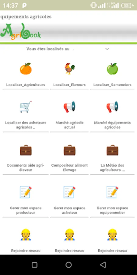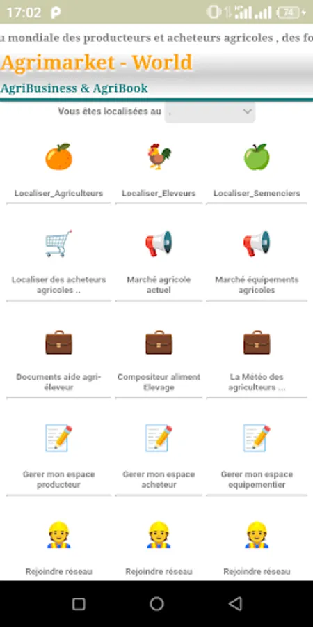 Application for locating agricultural services when needed, farmers, buyers, agricultural documents, breeders, weather ...