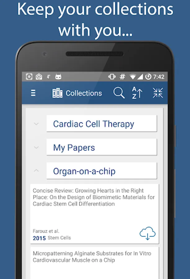 EZPaperz (pronounced "easy papers") is the first third-part client on Android for synchronizing, sorting and downloading articles that are managed with Papers, the famous reference management software from Mekentosj B.V. (now part of Springer).