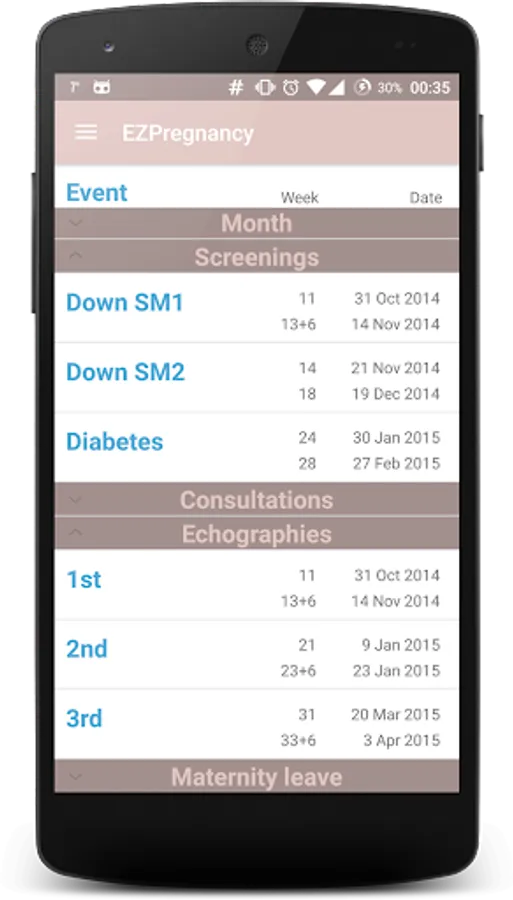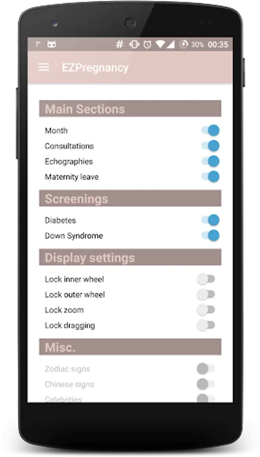EZPregnancy (pronounced "easy Pregnancy") lets you have your old cardboard wheel always with you on your smartphone or tablet, so that you never forget it between two gowns.