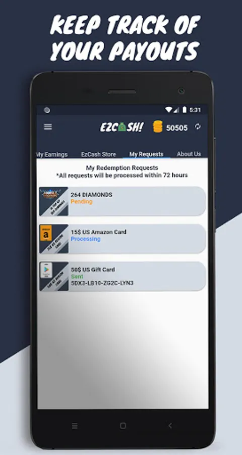 - 72 Hours or less payouts and the ability to follow your rewards requests.
