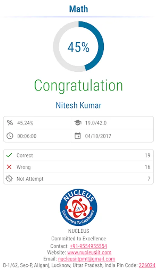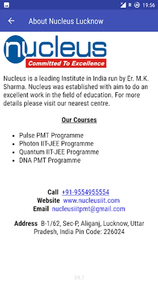 NUCLEUS is founded in 2014 by the vision and toil of Dr. S. K. Sharma, B.Tech, M.Tech. (IIT-Kharagpur) and Ph.D. (IIT-Roorkee).
