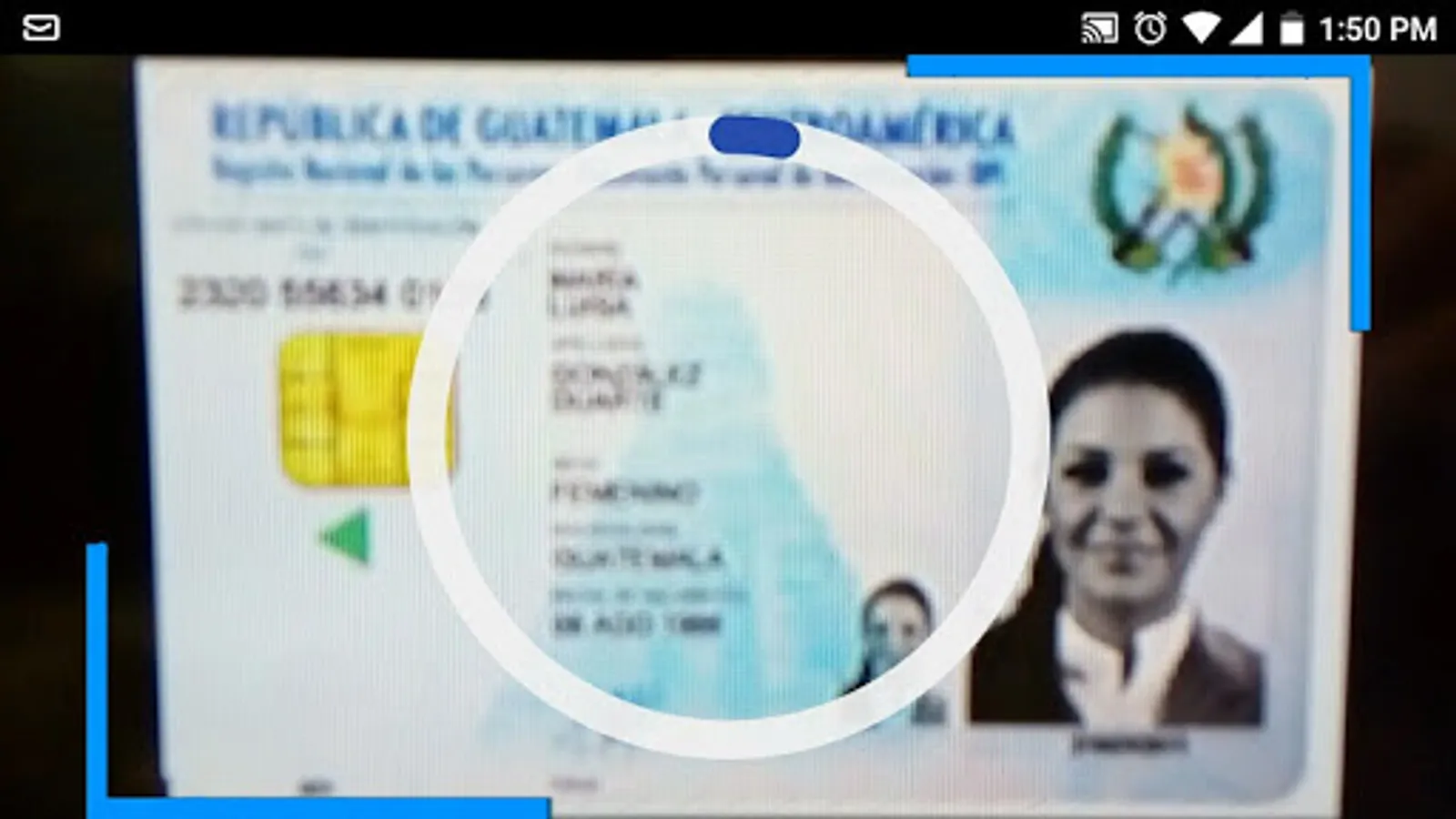 Extraction of information through online images of the DPI of the Republic of Guatemala, through an OCR, Automatas finitos type LL3, facial recognition of the Selfie comparison with the face of the front of the DPI of Guatemala where the photograph in normative ICA9303 is , additionally check that the front and back of the DPI are valid and of the same person.