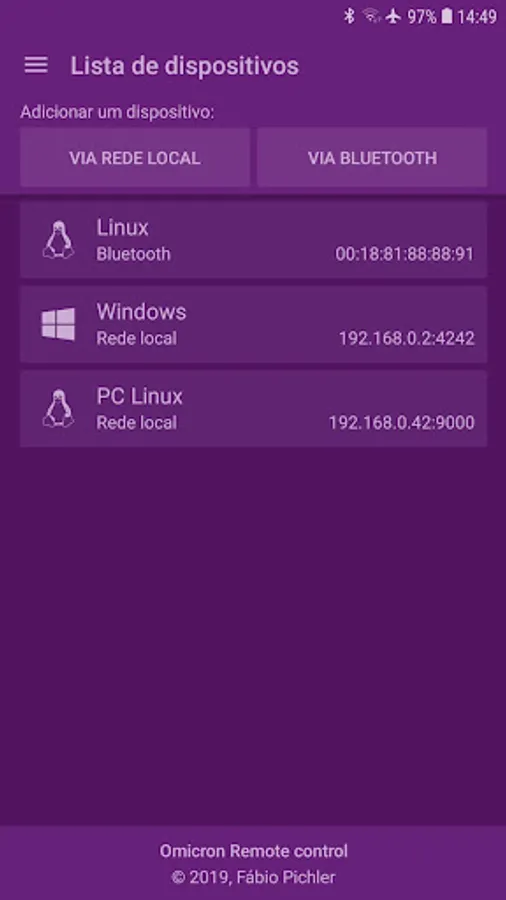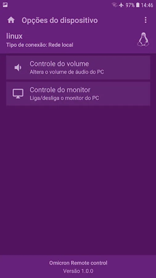 The app (client) connects to a program (server) on the PC (Windows or Linux).