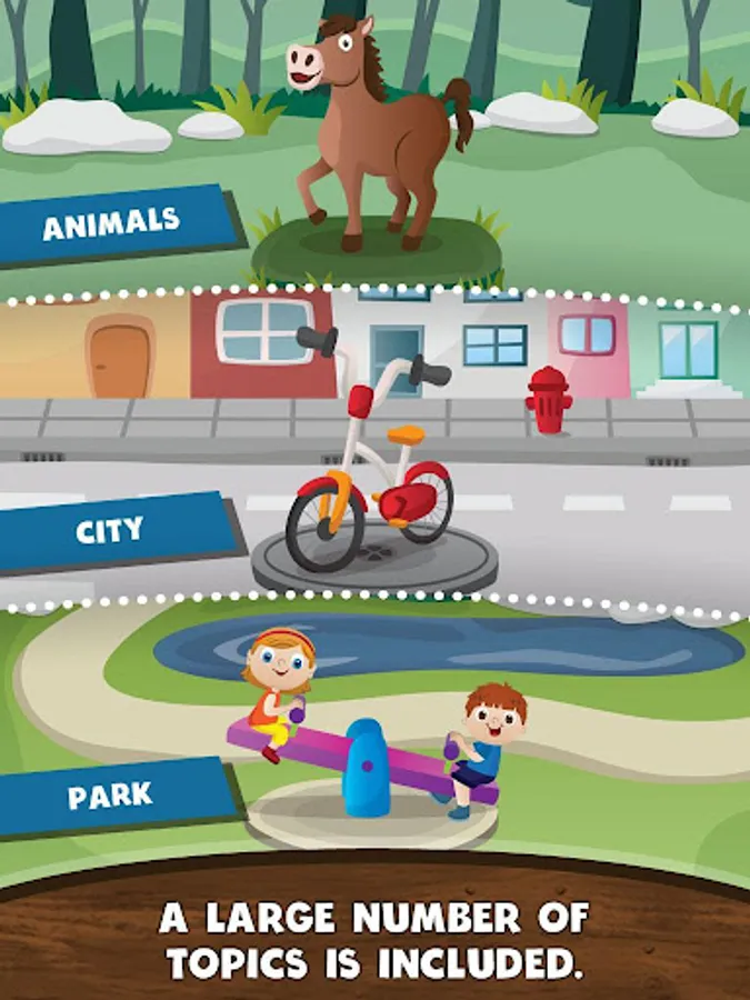 An educational game designed especially to introduce your baby or preschooler to learning everyday vocabulary. It’s fun, ad-free, and perfect for children between the ages of 1 and 5.
