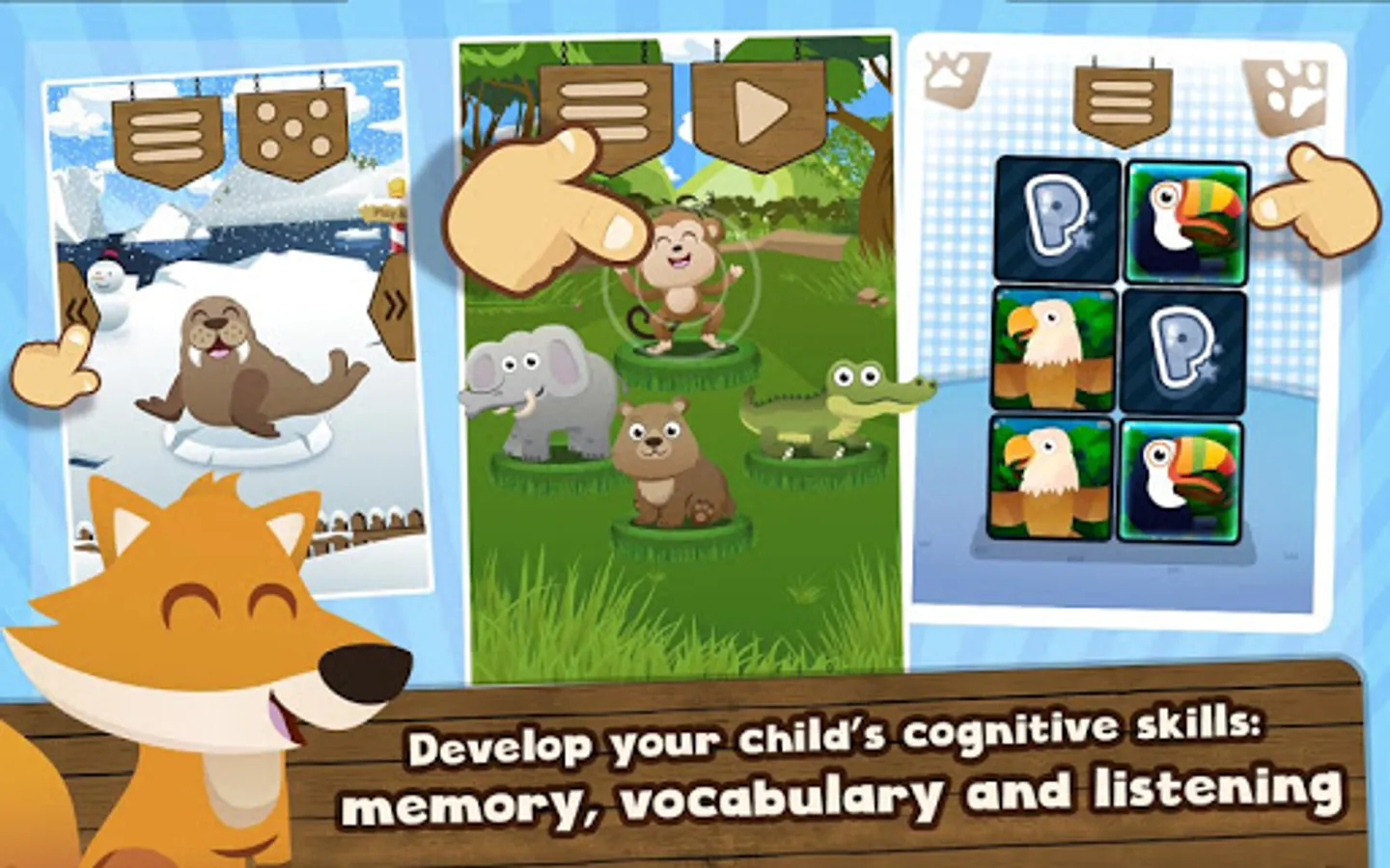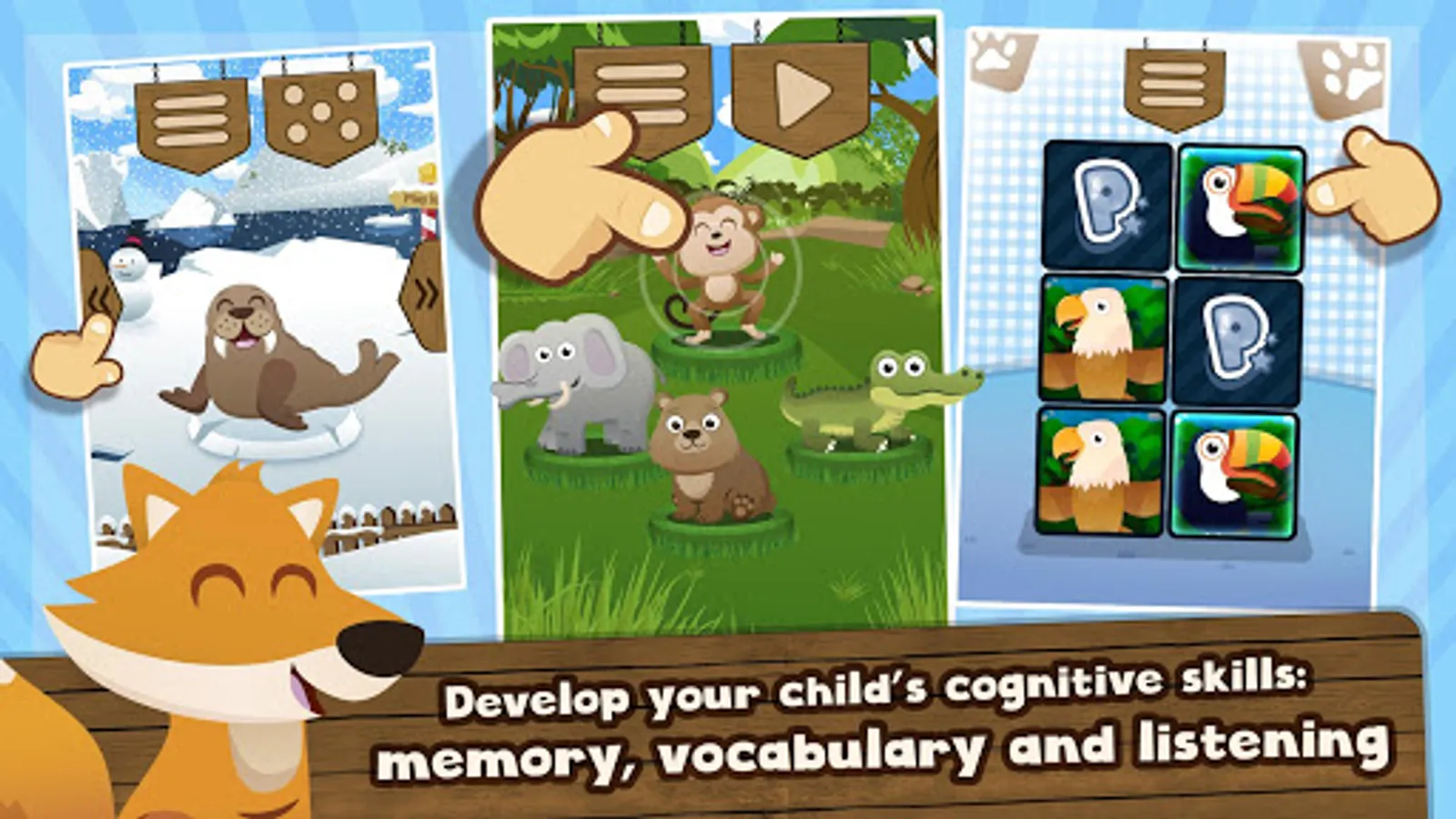 - Adorable graphics and a warm voice that accompanies the experience of discovering the animal sounds.