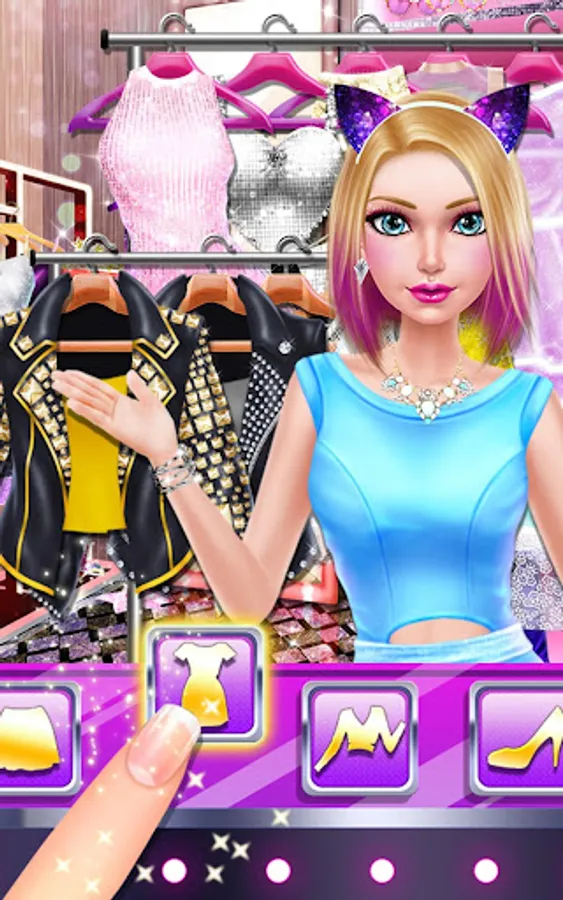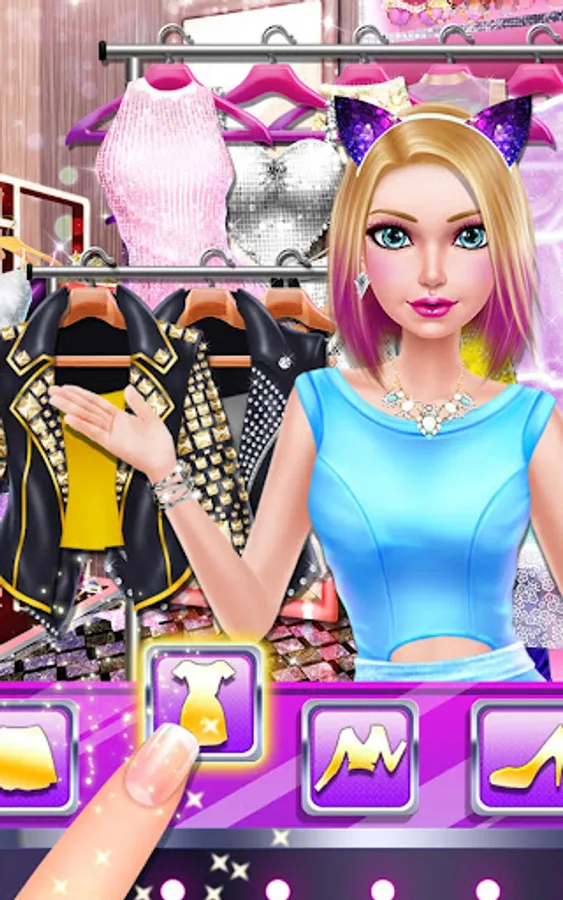 Move on to her fabulous closet and search for the right outfit for this popular singer. Select from punk rock to glamour looks, dresses and jeans. Make sure that she looks her best for the show. Don’t forget to dress up her number one fan too! She’s your special guest and wants to look her best too!