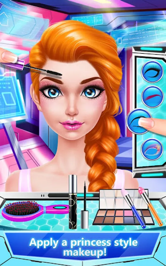 Start by going to the spa for a relaxing day before heading off on your space mission. Exfoliate, cleanse and moisturize your skin to remove gamma radiation and prepare for your interstellar visit. Finish by removing all of the asteroid dust from your last mission, then head off to your space ship salon for a fun makeup adventure.