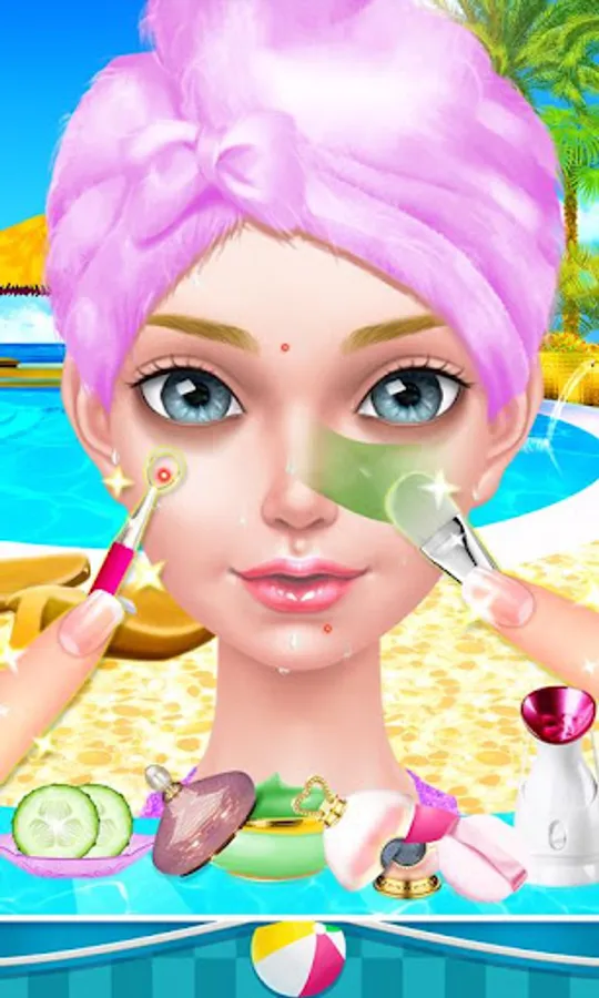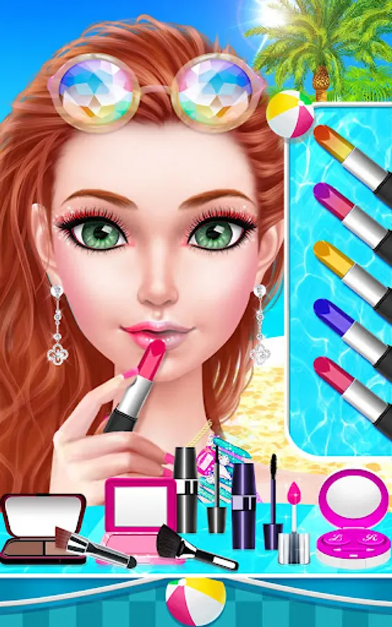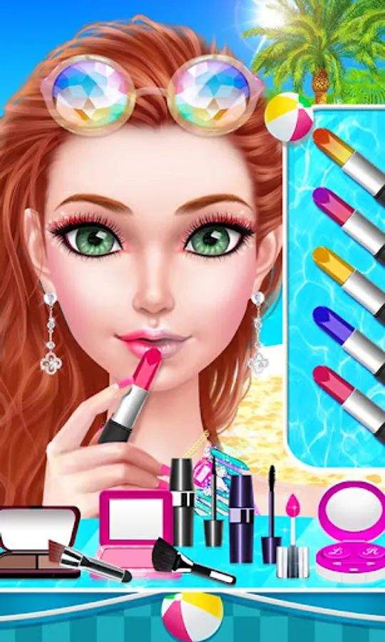 Help the pretty girls get ready for the first pool party of the year. Start by giving them a makeover at the tropical salon where the colors are as beautiful as a summer rainbow. Try on lots of fun and bright colored makeup styles. Apply mascara, lipstick and blush. Be sure to stay in the lines!