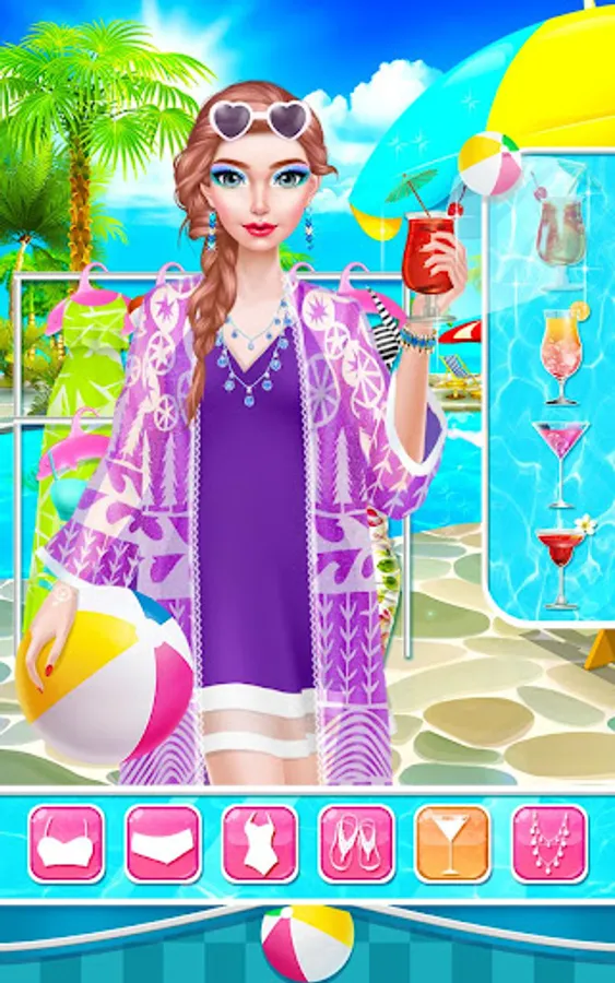 But don’t forget to pick out the coolest outfits for the pool party too. Mix and match bikinis and shorts. Add colorful dresses and lightweight wraps. Choose from adorable sandals and sneakers to complement the look, then try on all sorts of jewelry. With so many choices, you can design a look that’s all your own, then play again and again!