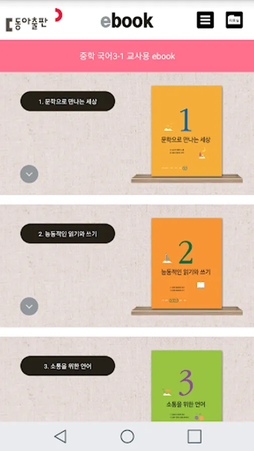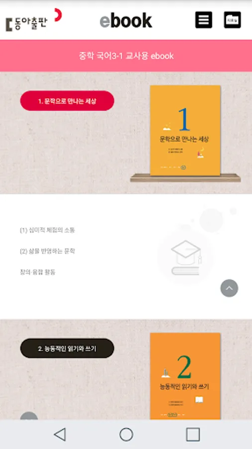 Donga Publishing Middle School Korean 2-2 is an application for demonstration as an app version of the teacher CD. Only registered teachers can read the e-book.