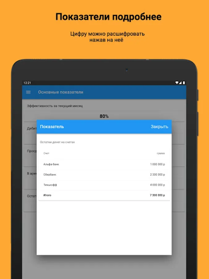 A mobile application that receives data from the 1C program and displays it in a smartphone. Helps to get answers to questions about the state of affairs in the company.