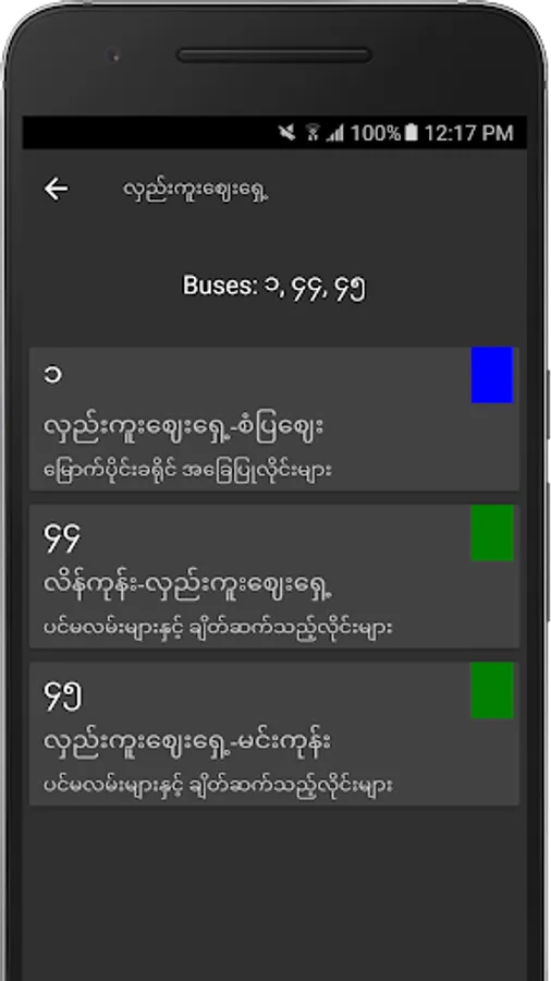 YGN Buses is an offline bus guide for Android users in Yangon (Rangoon) with bus routes, bus service lines and bus numbers.