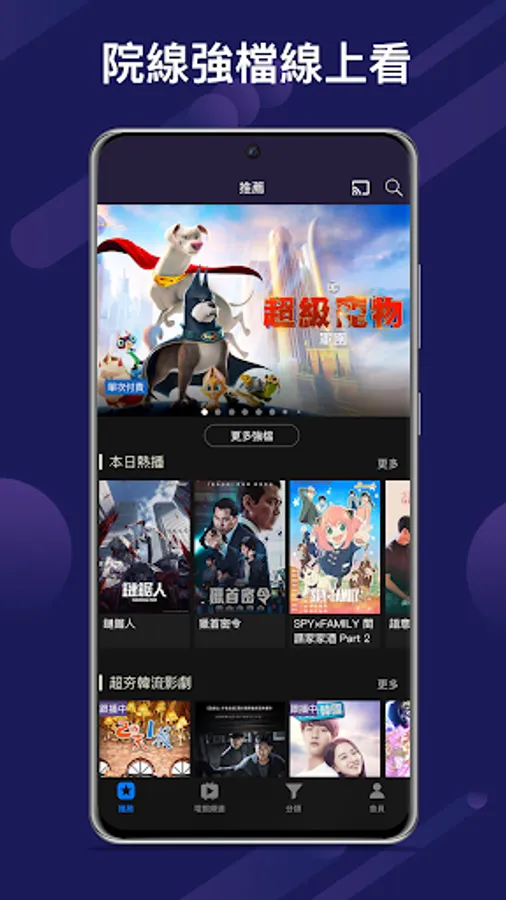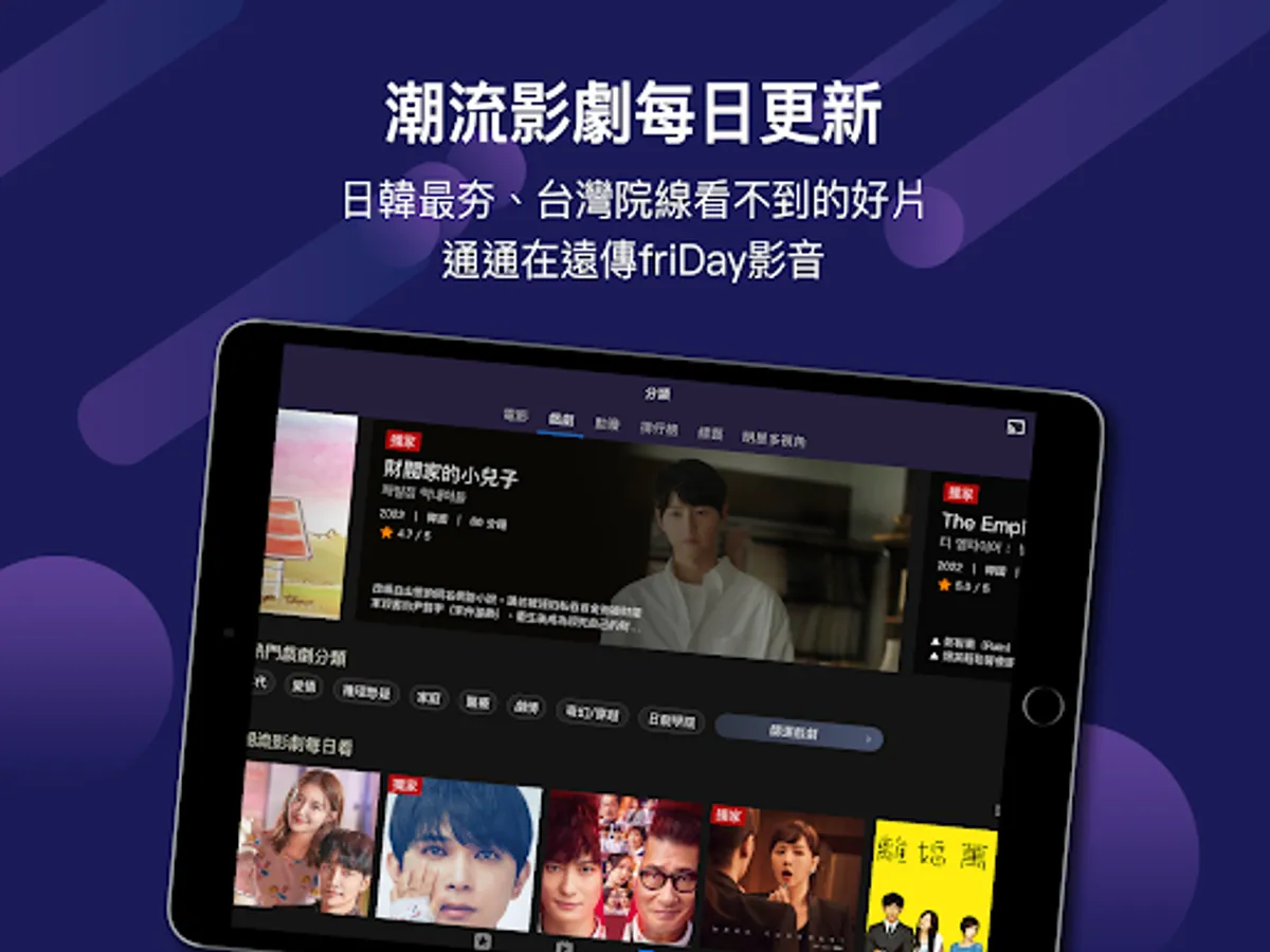 Far EasTone friDay Video is a genuine 4k high-definition online video service that supports cross-platform continuous viewing on different devices. It provides exclusive high-quality content, including powerful Hollywood movies, the latest Korean movies, follow-up Korean dramas, super Japanese dramas, high-quality Taiwanese dramas, Watch popular Chinese dramas, popular Korean dramas, live news, free 0-yuan movies and new anime online!