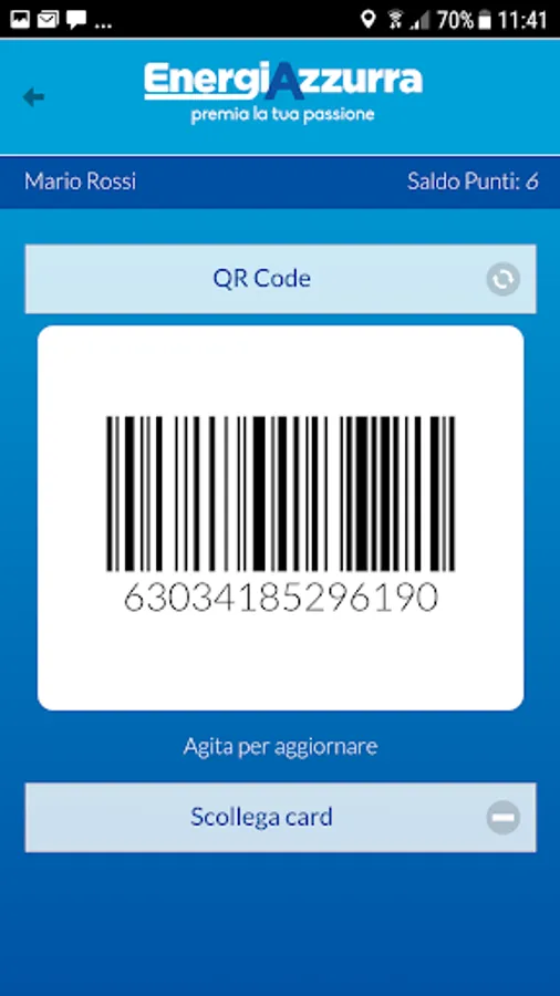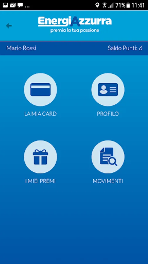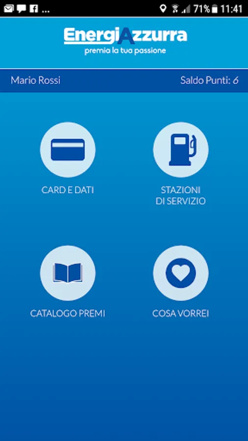 App you can immediately receive your card EnergiAzzurra, and see the rewards catalog, the list of Energas participating service stations, list of the movements, the premiums required and withdrawn.