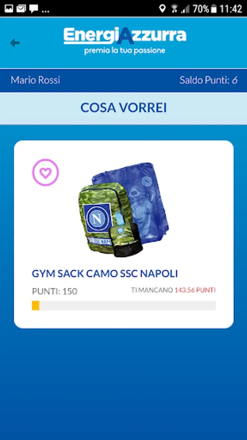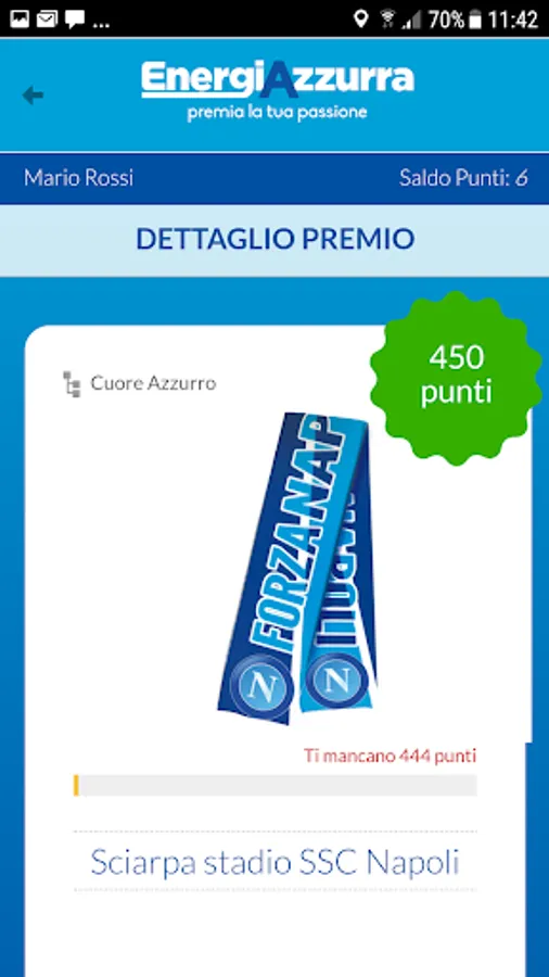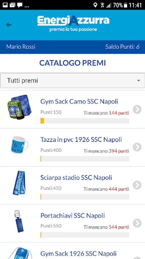 With the loyalty program EnergiAzzurra - Premia your passion collect points to win many awards of SSC Napoli, Euronics Tufano and pasta Garofalo.