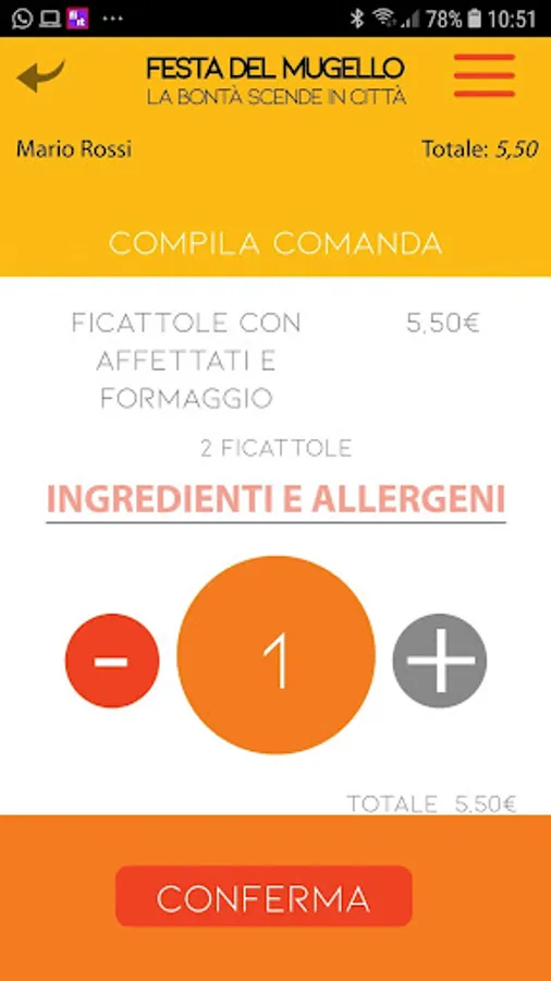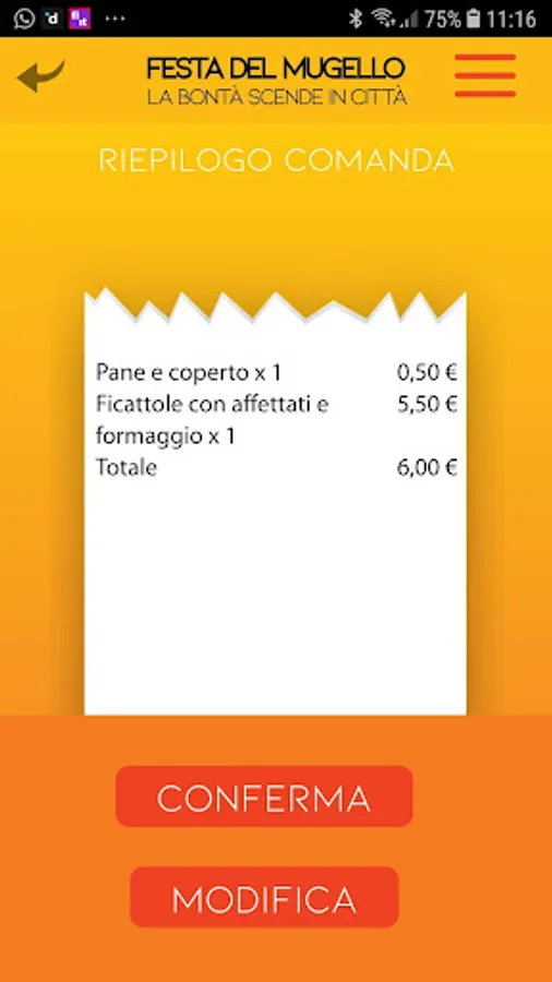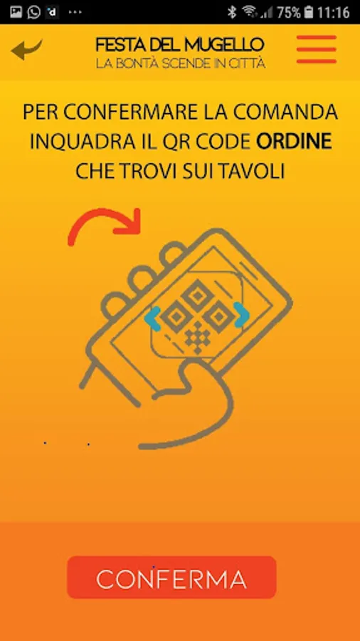 Festa del Mugello is an APP that allows you to manage orders directly from the table by your mobile phone. By confirming the order via QRCODE present on the tables of the Festa del Mugello, the customer will receive his number with which he will be called to the cashier for payment of the order. The APP allows you to avoid gatherings at the festival cash desk. Once the order is ready, the customer will receive a notification for the collection of the tray.