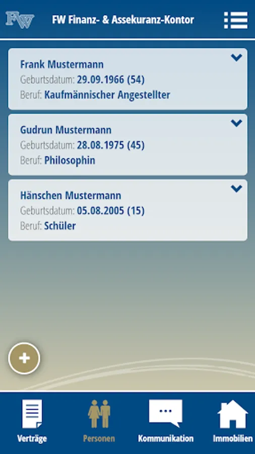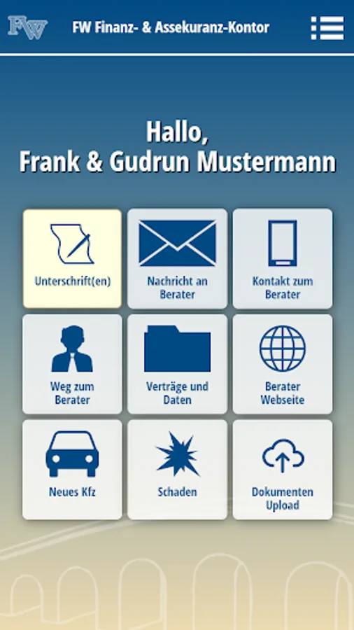 The FW brokers APP is on at Finance & Insurance stored customer data an application to access and documents. So you can at any time and go to access the private contract data to insurance, investments, financing and home loan contracts and view a document to available.